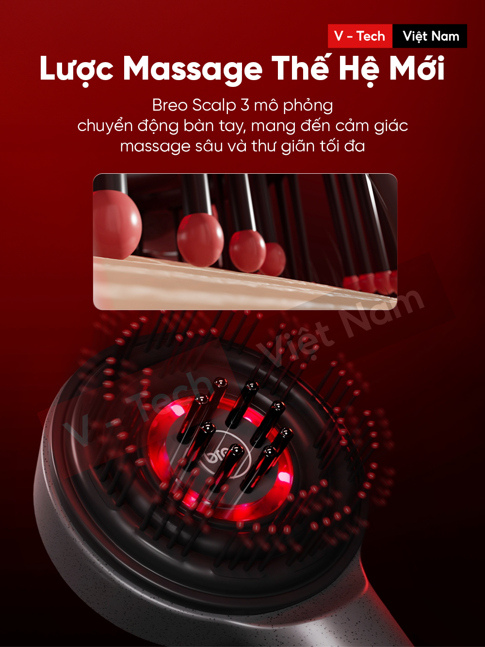 Breo Scalp 3 là lược điện massage da đầu cao cấp, giúp kích thích tuần hoàn máu, cải thiện khả năng hấp thụ dưỡng chất của nang tóc, giảm rụng tóc và hỗ trợ mọc tóc. Với công nghệ ánh sáng hồng ngoại 850nm và 72 đầu massage mô phỏng bàn tay, sản phẩm giúp thư giãn, cải thiện sức khỏe tóc từ gốc.