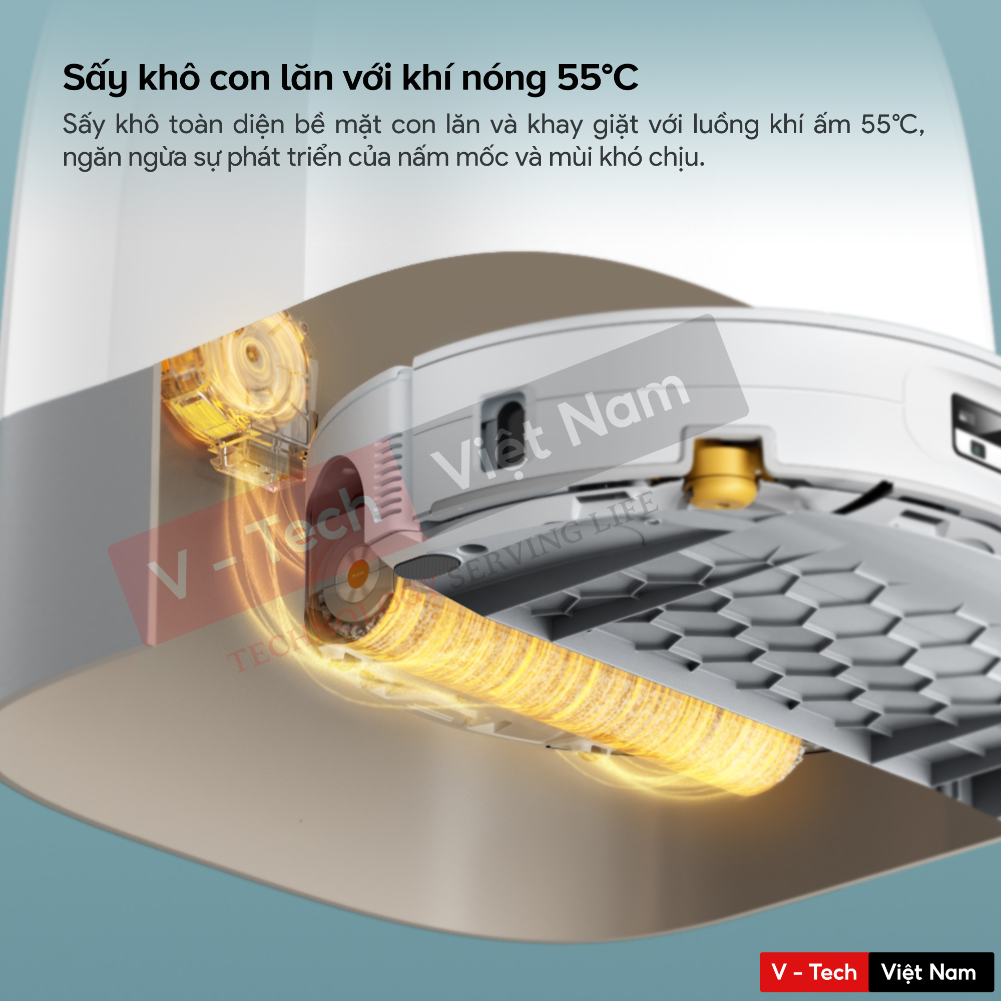 - Nhận diện thảm thông minh, tự động nâng con lăn tránh làm ướt thảm.