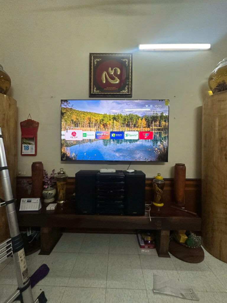 Mình lên nhà mới lắp mẫu 75 inch nhân viên lắp cẩn thận chất lượng tivi tốt nhé