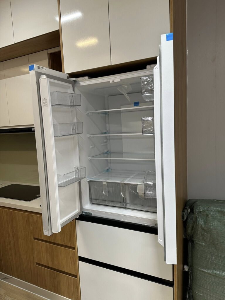 - Thiết kế cửa tủ mở ra 90 độ thuận tiện khi lấy hoặc sắp xếp thực phẩm, ngay cả trong không gian hẹp.